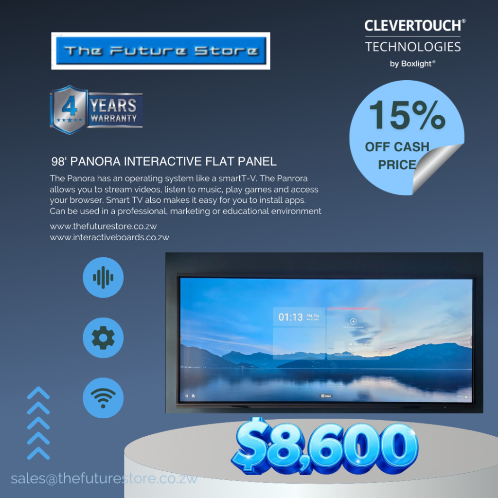 Uncategorized 98′ INCH PANORA INTERACTIVE FLAT PANEL February 24, 2026February 24, 2026 Futurestore Share Facebook Twitter Pinterest Linkedin